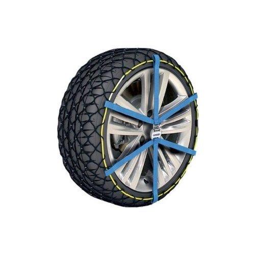 Catene da neve in materiale composito ad altissima tecnologia. Montaggio e smontaggio ultrarapidi (si montano come una calza in 2 minuti) grazie al nuovo tenditore elastico ed alla chiusura anteriore con semplice attacco metallico. Larga banda tessile e minimo spessore interno per una migliore tenuta sulla ruota. Compatibili con sistemi ABS e ESP. Fornite in una pratica ed ergonomica borsa con lato trasparente che permette di visionare le catene; la dotazione comprende un paio di guanti per il montaggio e le istruzioni d’uso stampate su un tappetino extralargo, plastificato, da suolo