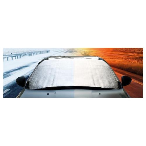 Proteggi parabrezza termico, con superficie in alluminio riflettente e bordi cuciti rinforzati. Protegge dal ghiaccio in inverno e riduce l’accumulo di calore nell’abitacolo in estate. La forma trapezoidale garantisce una migliore copertura mentre le alette laterali consentono un fissaggio veloce tra montante e portiera. Ideale anche per proteggere le spazzole tergicristallo.