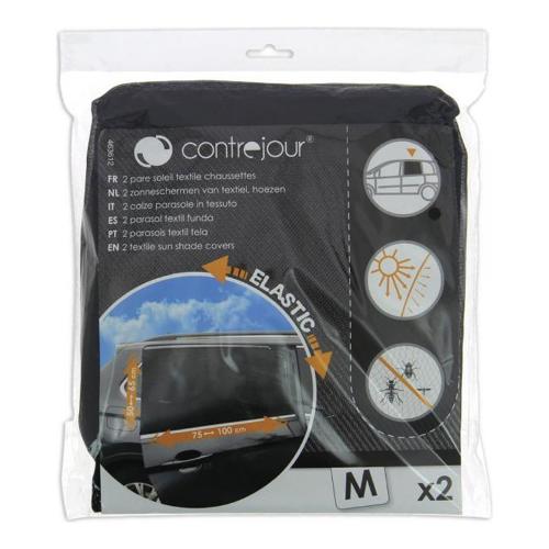 Coppia calze parasole in maglia sottile semi trasparente. Si montano come un calzino sul telaio delle portiere posteriori dell'auto e non si rimuovono durante il viaggio grazie al fissaggio con velcro. Bloccano efficacemente i raggi UV e proteggono l'abitacolo dal calore del sole senza danneggiare la visibilità e il buon funzionamento dei vetri. Offrono ai bambini, ai passeggeri e agli animali domestici, un ambiente confortevole e ventilato in auto. Efficaci contro l'intrusione di insetti volanti, zanzare, vespe, mosche. Facili da installare e da riporre. Consigliate per vetri posteriori (telaio incluso) da 75 a 100 cm di lunghezza e da 50 a 65 cm di altezza.