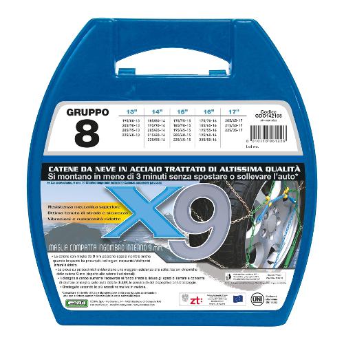 Catene neve romboidali per autovetture Gr. 8 (80) ( ingombro 9 mm ) X9 GDO142108