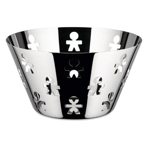 Il cestino traforato girotondo è un icona del catalogo alessi. Il duo creativo king-kong, stefano giovannoni e guido venturini, ha ideato il motivo degli omini che si rincorrono in un girotondo, da cui il nome della collezione: un traforo dal linguaggio immediato ed evocativo, che trova spazio su oggetti di uso quotidiano.
