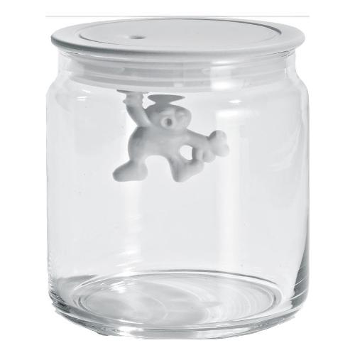 Il classico barattolo da cucina è reinterpretato dal designer mattia di rosa: il design anziché essere all'esterno è qui pensato all'interno. L’autore, con sapiente uso dell'ironia, ha creato l'omino gianni che è aggrappato al coperchio. Il barattolo ermetico diviene così divertente da non volerlo riempire.