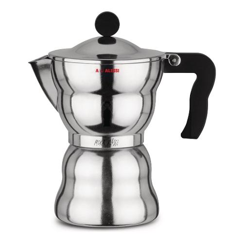 La caffettiera moka alessi, creata da alessandro mendini, ha una forma tondeggiante che esprime la sua parentela con la tradizionale moka. Una caffettiera espresso in fusione di alluminio con manico ergonomico e pomolo in resina termoplastica. Un vero e proprio elogio del rito quotidiano del caffè