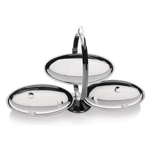 Alessandro mendini rilegge una tipologia tradizionale attraverso il suo design ricco di suggestioni artistiche: anna gong è un elegante alzata a tre piatti che si trasforma, una volta chiusa, in un affascinante ritratto scultoreo.