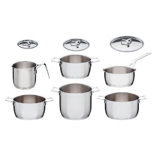 Composizione: Pentola cm 20, Casseruola a due manici da 16, 20 e 24 cm, Casseruola a manico lungo 16 cm, bollilate 14 cm, coperchio da 16, 20 e 24 cm