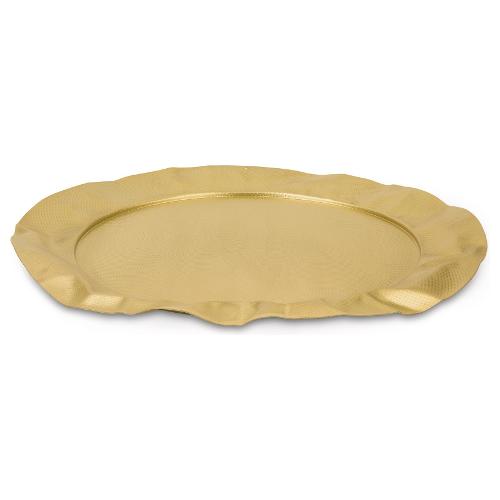 Il vassoio rotondo foix extra ordinary metal ha un linguaggio fatto di affascinanti increspature e riflessi imprevedibili, che offrono punti di vista sempre diversi. La collezione extraordinarymetal unisce l’esperienza storico produttiva della alessi a elementi caratteristici della cultura italiana, per esplorare nuove possibili definizioni della superficie metallica. L’ottone è stato scelto per interpretare in chiave industriale una raffinata e antica tecnica orafa, la granulazione etrusca. Ottenuta attraverso un procedimento di imbutitura a freddo dell’ottone, la crea una ricca interazione con la luce, una sorta di pelle luminosa in grado di esaltare sia forme complesse sia linee pure e neutre. La disposizione dei “grani” segue una sequenza geometrica generata dalla successione di fibonacci, matematico italiano che per primo tradusse in numeri la logica aurea delle proporzioni classiche. Questo principio, che regola gli equilibri della natura, esprime un’armonia compositiva senza tempo e diviene l’autore extra-ordinario di questo progetto
