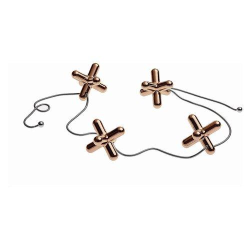 Tripod è l’originale sottopentola disegnato da gabriele chiave pensato per essere lanciato sulla tavola, come si fa con dei dadi, per poi diventare una stabile base su cui appoggiare una pentola, una teglia o un piatto da portata. Realizzato in acciaio inossidabile 18/10, tripod è arricchito dalla speciale finitura golden pink. La collezione objets-bijoux si tinge di rosa. Piccoli e funzionali oggetti d’uso quotidiano, gli objets-bijoux sono caratterizzati da una sapiente lavorazione dei metalli. La finitura golden pink aggiunge eleganza e unicità a queste ironiche e raffinate invenzioni, ideali come doni da regalare o regalarsi. Selezionate tra gli objets-bijoux, diverse tipologie di oggetto sono impreziosite da questa finitura superficiale, brillante e ricercata