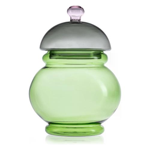 Contenitore decorativo vetro borosilicato con coperchio (18x25cm) GLI SCACCHI Verde e Grigio 9231.1
