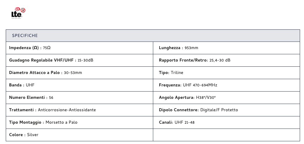 Antenna digitale terrestre Alluminio Silver COR56UHF5G