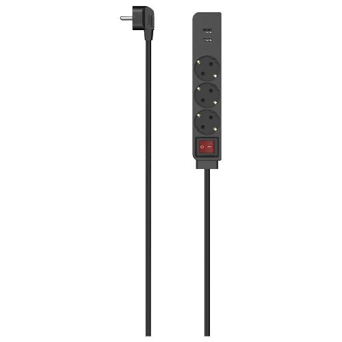 Presa multipla per il collegamento di un massimo di cinque apparecchi elettrici tramite tre prese con contatto di protezione e due uscite USB. Lunghezza cavo 1,4m.