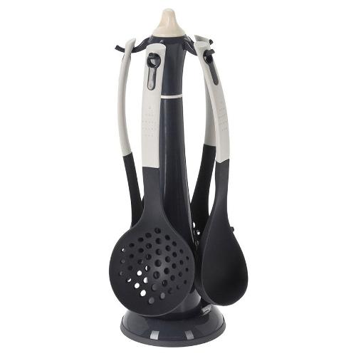 Set cucina 5 pz con supporto Plastica EXCELLENT HOUSEWARE Nero e Grigio 026000080