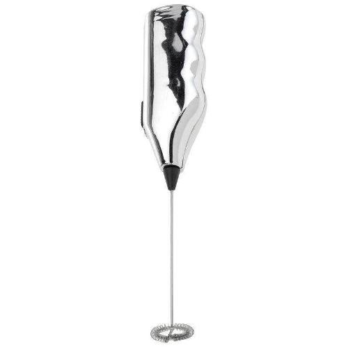 Montalatte miscelatore per cappuccino cromato in confezione regalo. Dispositivo di miscelazione pratico, versatile ed elegante. Con questo piccolo mixer non solo puoi montare la schiuma di latte per il tuo cappuccino, ma puoi anche usarlo per preparare cocktail, condimenti, frappè. Eccetera. Funzionamento con 2 batterie AA 1,5V (non incluse nella confezione)