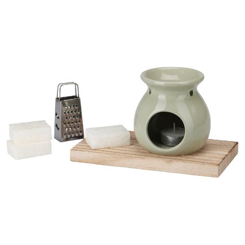 Set regalo profumazione, 2 fragranze assortite: frangipani fresco e legno di sandalo. Ogni set include: 1x bruciatore di olio dolomite, 1 piatto di legno in mdf: 20x10 cm, 1x raspa d'argento, 2x candele tealight e 3x blocco di cera fondente. Ogni set confezionato in scatola colorata, ore di combustione: 4 ore, ass.: 2 fragranze (frangipani fresco/legno di sandalo)