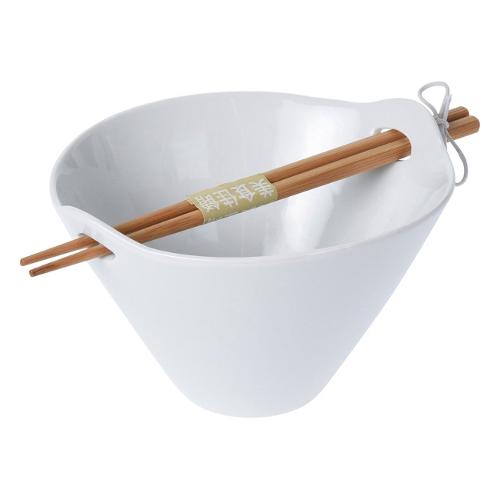 Porta un'autentica esperienza culinaria asiatica sulla tua tavola con questo set di ciotole per ramen in porcellana. Che tu sia un fan del ramen, del pho o di altri piatti asiatici, con questa ciotola e le sue bacchette potrai mangiare i tuoi piatti preferiti con stile.