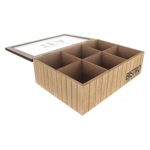 Porta bustine MDF 6 scomparti (24x16,5x7,3cm) Legno naturale e Nero HZ1940010