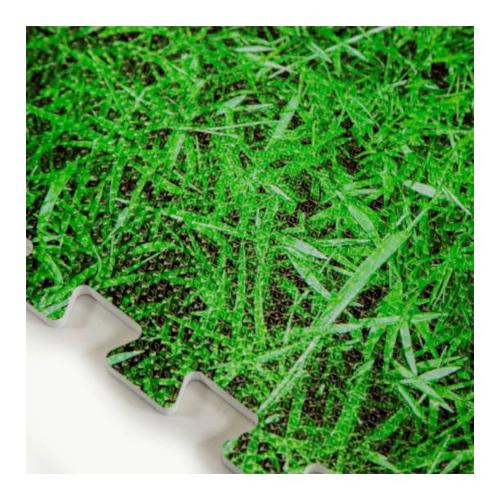 Tappeto sotto piscina puzzle stampato con effetto prato realizzato in etilene vinil acetato.