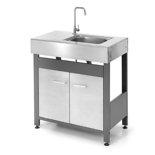 Modulo componibile in acciaio inox. Lavello, rubinetto, piano superiore e due robuste porte in acciaio inox. Tubo di scarico lavello incluso. Struttura del modulo in acciaio verniciato resistente e durevole nel tempo. Modulo predisposto per l’aggancio e il fissaggio con i BBQ INDIANAPOLIS 4/B-5/B-7/B e gli altri moduli serie INDIAN