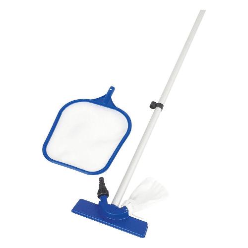 Il kit di manutenzione per piscine da 396 cm comprende unpalo in alluminio con una testa intercambiabile per aspirare e uno skimmer.