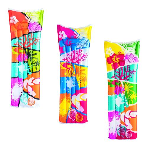 Questo innovativo materassino è disponibile in 3 design assortiti, è dotato di un cuscino a 2 camere per un maggiore comfort e supporto mentre ti rilassi al sole.