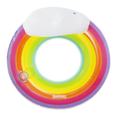 Preparati per un viaggio in un paradiso colorato con l'anello da nuoto bestway® rainbow dreams™ con poggiatesta. il salvagente rainbow dreams™ offre spazio sufficiente per rilassarsi e galleggiare nell'acqua. Il design arcobaleno aggiunge un tocco vivace e allegro alla tua esperienza di bagno. Il punto forte di questo salvagente è il comodo schienale, che permette di sedersi e godersi appieno la tranquillità dell'acqua. Il rainbow dreams™ swim ring è dotato anche di un comodo portabevande in modo da poter tenere le bevande a portata di mano senza dover uscire dall'acqua. Questo anello da nuoto si gonfia rapidamente ed è pronto per l'uso ed è altrettanto facile da sgonfiare e riporre. Che sia in piscina, al lago o in spiaggia, l'anello da nuoto rainbow dreams™ è il tuo fedele compagno per rilassanti momenti in acqua. Ogni confezione contiene non solo l'anello da nuoto stesso, ma anche una pratica toppa di riparazione.