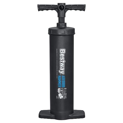 Pprogettato per il massimo flusso d'aria. La pompa funziona sia con movimenti verso l'alto che verso il basso, il che accorcia l'intero processo di pompaggio su e giù. Il tubo flessibile e i 3 diversi adattatori per valvole consentono di utilizzare la pompa su molti articoli gonfiabili diversi. Non importa se hai una piscina per bambini, materassi ad aria, barche ecc. – air hammer™ lo pompa! La pompa è anche facile da trasportare e riporre.