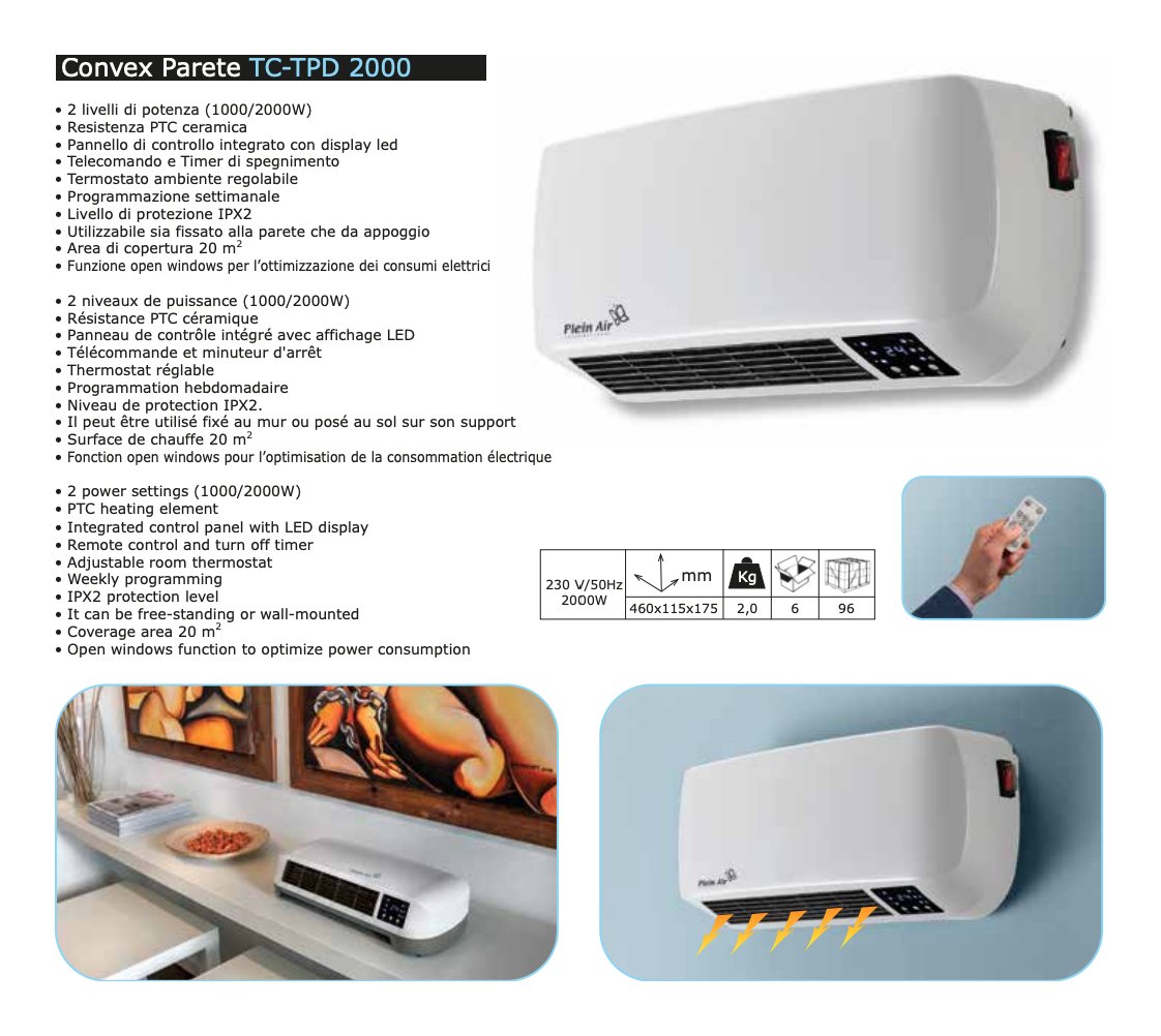 Ideale per riscaldare appartamenti, negozi, uffici, sale d’aspetto e tutti quegli ambienti dove sia necessaria una fonte di calore ed un design classico. Area di copertura 20 mq. Pratico, ad altissima efficienza elettrica certificata ERP. La funzione open windows garantisce la riduzione automatica dei consumi elettrici in caso di apertura finestra.