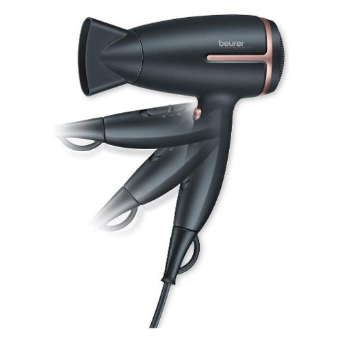 Il potente asciugacapelli da viaggio si presta perfettamente per le vostre vacanze: è utilizzabile ovunque, la funzione agli ioni integrata garantisce una lucentezza extra e, grazie all'impugnatura pieghevole, non necessita di molto spazio in valigia.