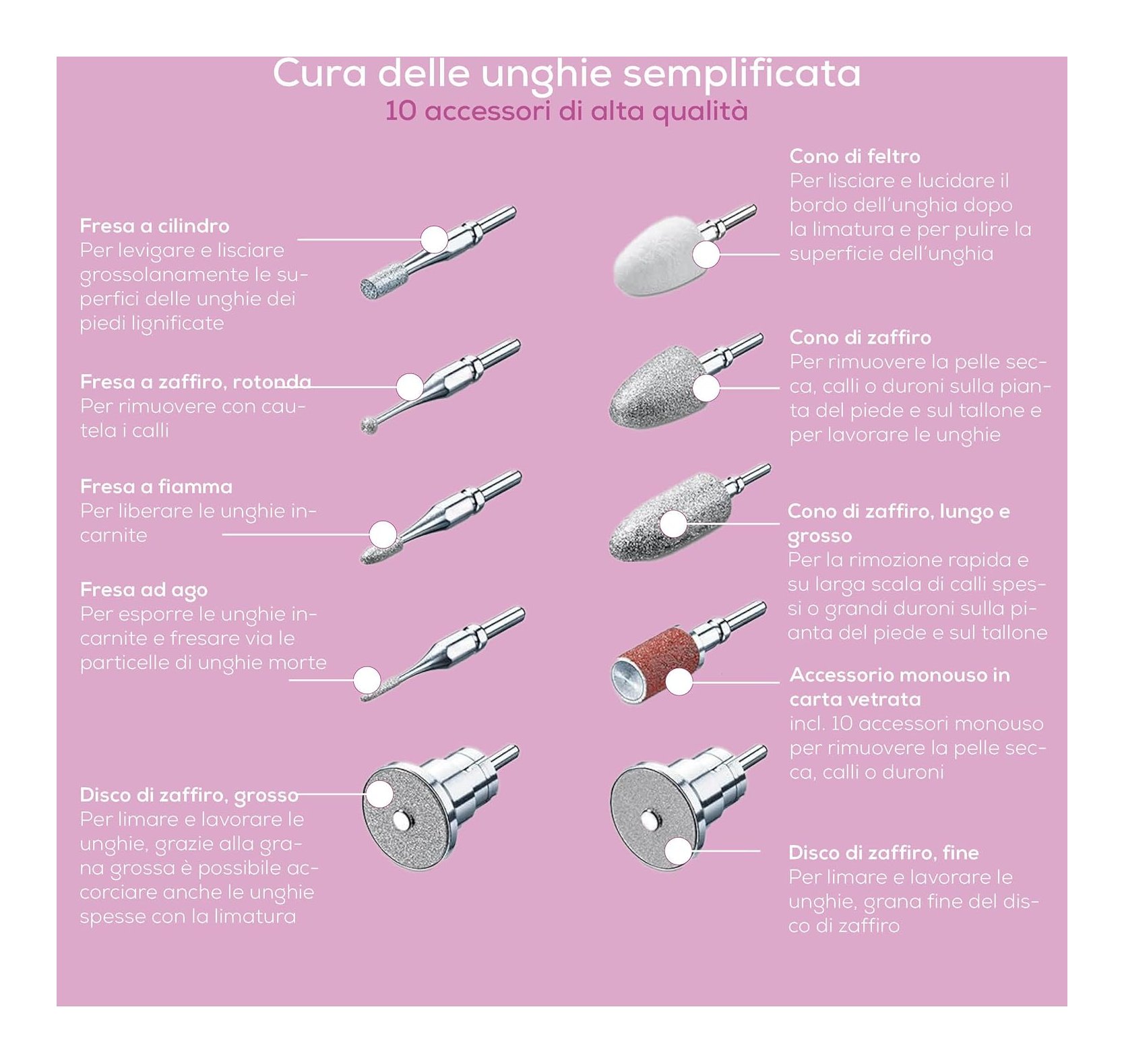 Il set per manicure e pedicure MP 62 di Beurer con luce a LED è l'ideale per la cura professionale di unghie e piedi: per unghie perfette come in un centro estetico. 10 accessori in zaffiro e feltro di alta qualità e tappo di protezione dalla polvere delle unghie. Gli accessori sono adatti anche per diabetici