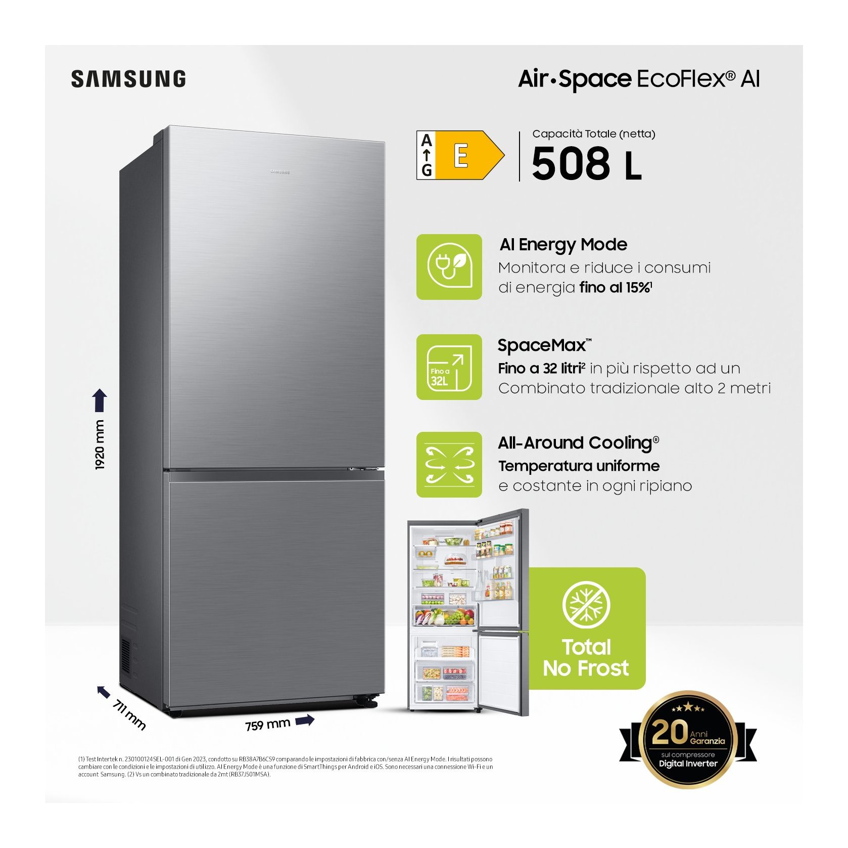 Frigorifero e congelatore Combinato FIRST RB50DG602ES9EF Air Space EcoFlex AI Total No Frost Metal inox classe E (75,9x71,1x192cm)