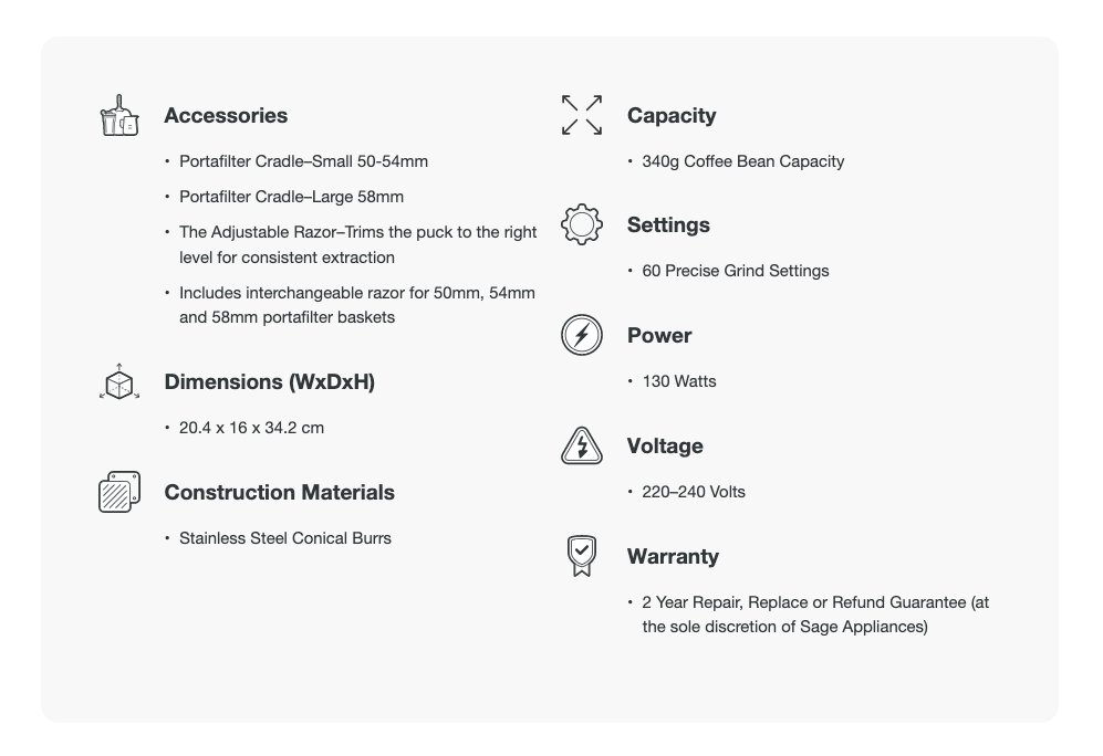 Prendi il controllo dei tuoi chicchi appena tostati con 60 precise impostazioni di macinatura che ti danno il controllo fino al secondo. Le macine coniche di precisione di questa macchina riducono al minimo il calore di macinatura e proteggono gli oli essenziali dove risiede il sapore fresco del caffè.