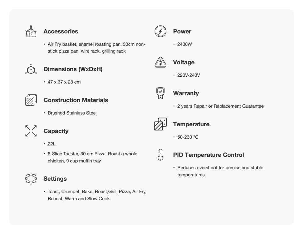 La friggitrice ad aria Smart Oven alimentata dal nostro sistema Element iQ offre le massime prestazioni e versatilità. Gli algoritmi intelligenti replicano l'ambiente di cottura ideale per la friggitrice ad aria e 9 tecniche di cottura aggiuntive. Temperature più elevate e super convezione accelerano i tempi di cottura con grande croccantezza.