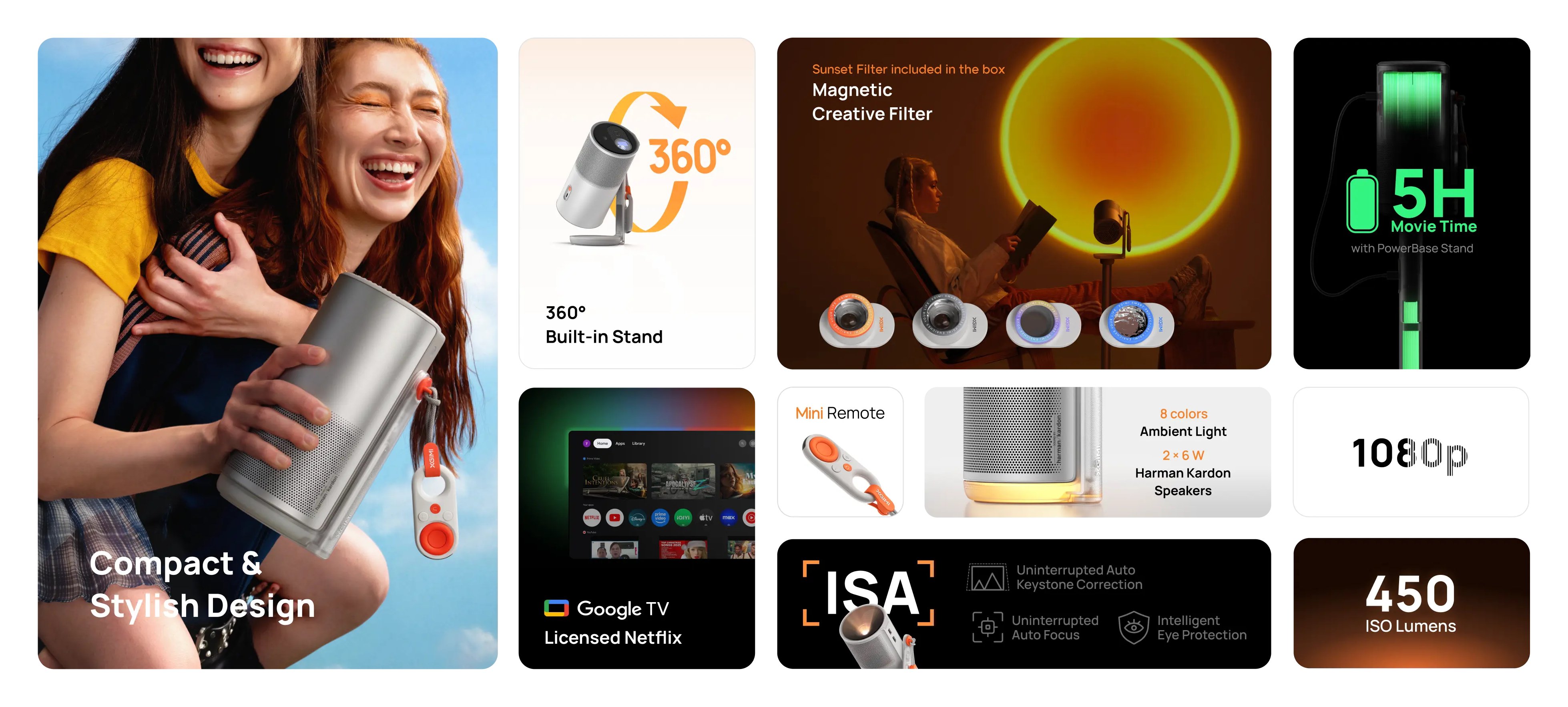 Progettato per portare la festa ovunque, con le dimensioni di un thermos da caffè. Con una protezione antigraffio per le lenti e un mini telecomando, MoGo 4 rende la festa ancora più semplice.