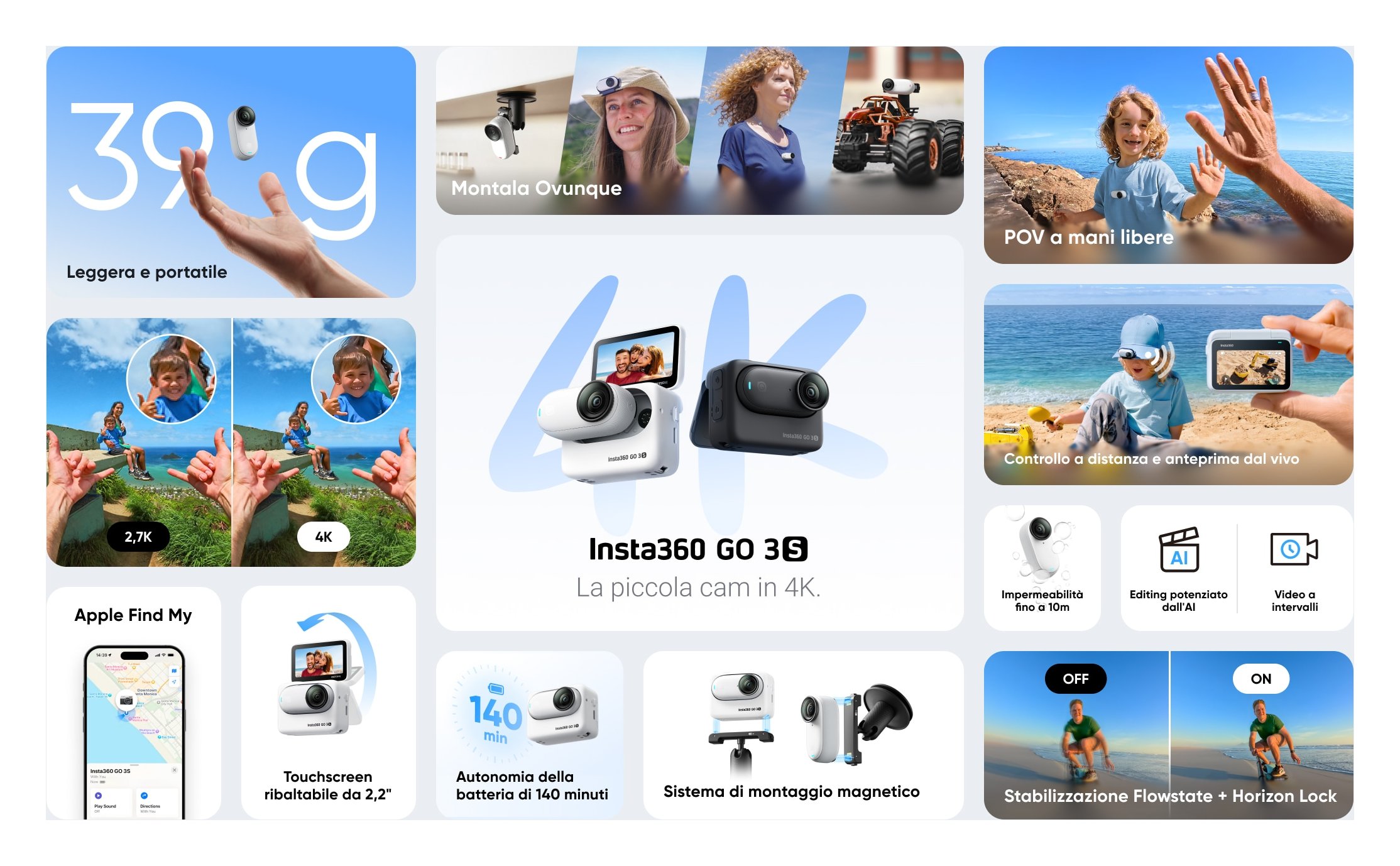 Una videocamera piccola, con un potenziale enorme. Goditi il momento a mani libere! Imposta il Controllo Vocale e dimenticati della videocamera, per POV semplici ed ultra ampi. La tua immaginazione sarà il tuo unico limite.