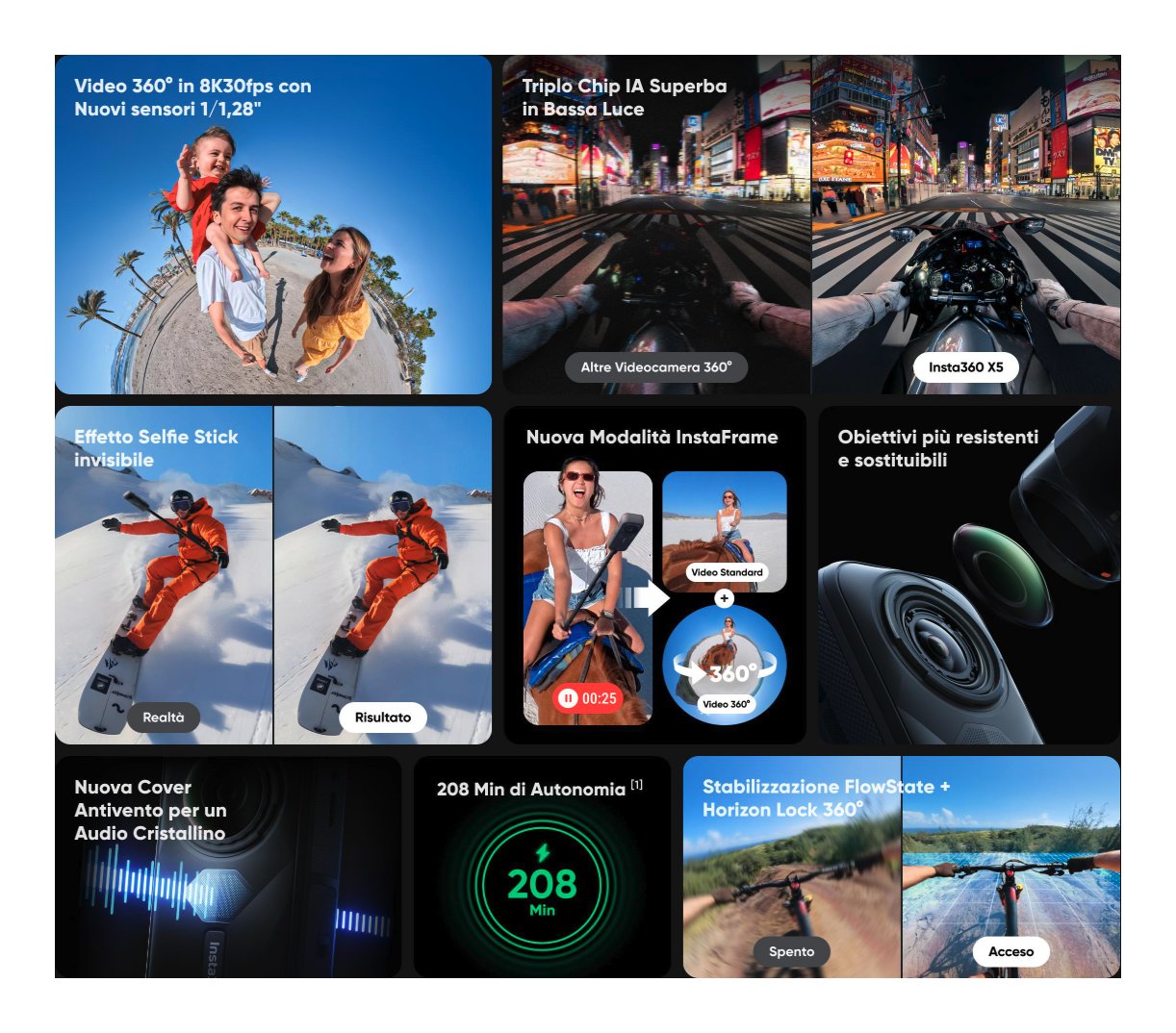 Cattura il tuo mondo con una qualità d'immagine incredibilmente realistica. La X5 utilizza il supersampling da 11K a 8K, rendendo tutto molto più dettagliato e chiaro e offrendo clip veramente coinvolgenti.