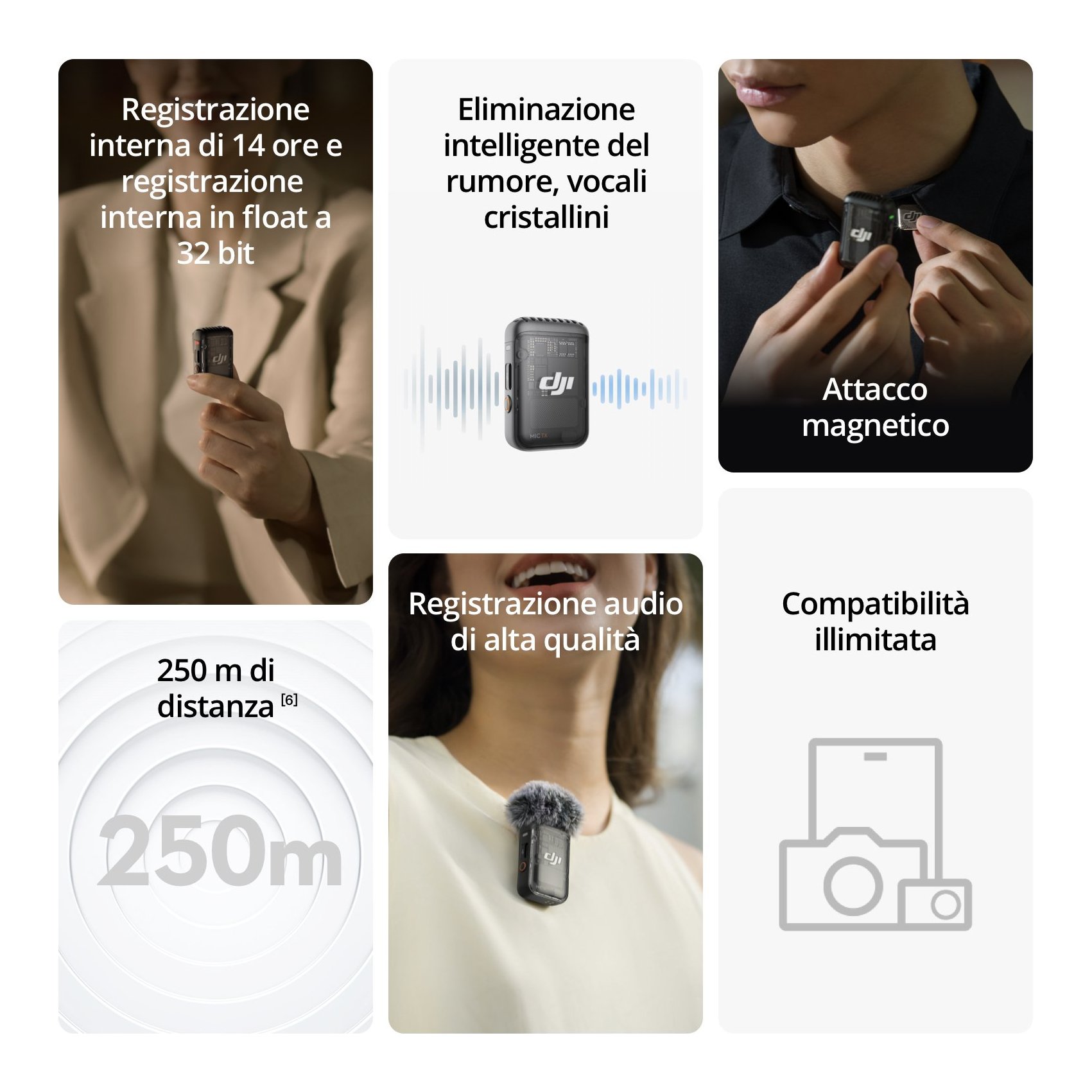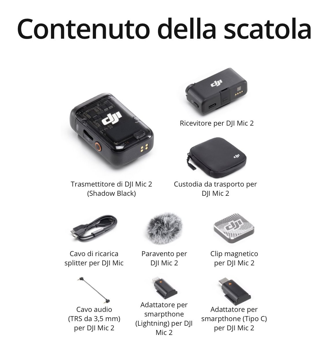 Questo microfono wireless offre audio di alta qualità con registrazioni vocali più cristalline, chiare e piacevoli, rendendolo ideale per interviste, vlog e molti altri scenari. DJI Mic 2 è dotato di adattatori USB-C, Lightning e da 3,5 mm ed è compatibile con la maggior parte degli smartphone, fotocamere e laptop.