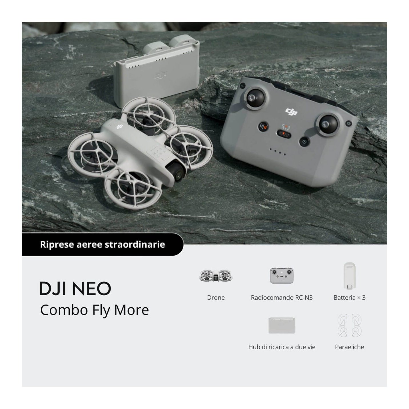 Con un peso di soli 135 g, DJI Neo è il drone DJI più leggero e compatto mai visto finora. Decolla e atterra sul palmo della mano facilmente e senza radiocomando, e riprendi immagini straordinarie con te sempre al centro della scena. Sorvola paesaggi mozzafiato, al chiuso e all’aperto, e riprendi tutti in una foto di gruppo. Scopri la vita di ogni giorno da una prospettiva tutta nuova, con DJI Neo.