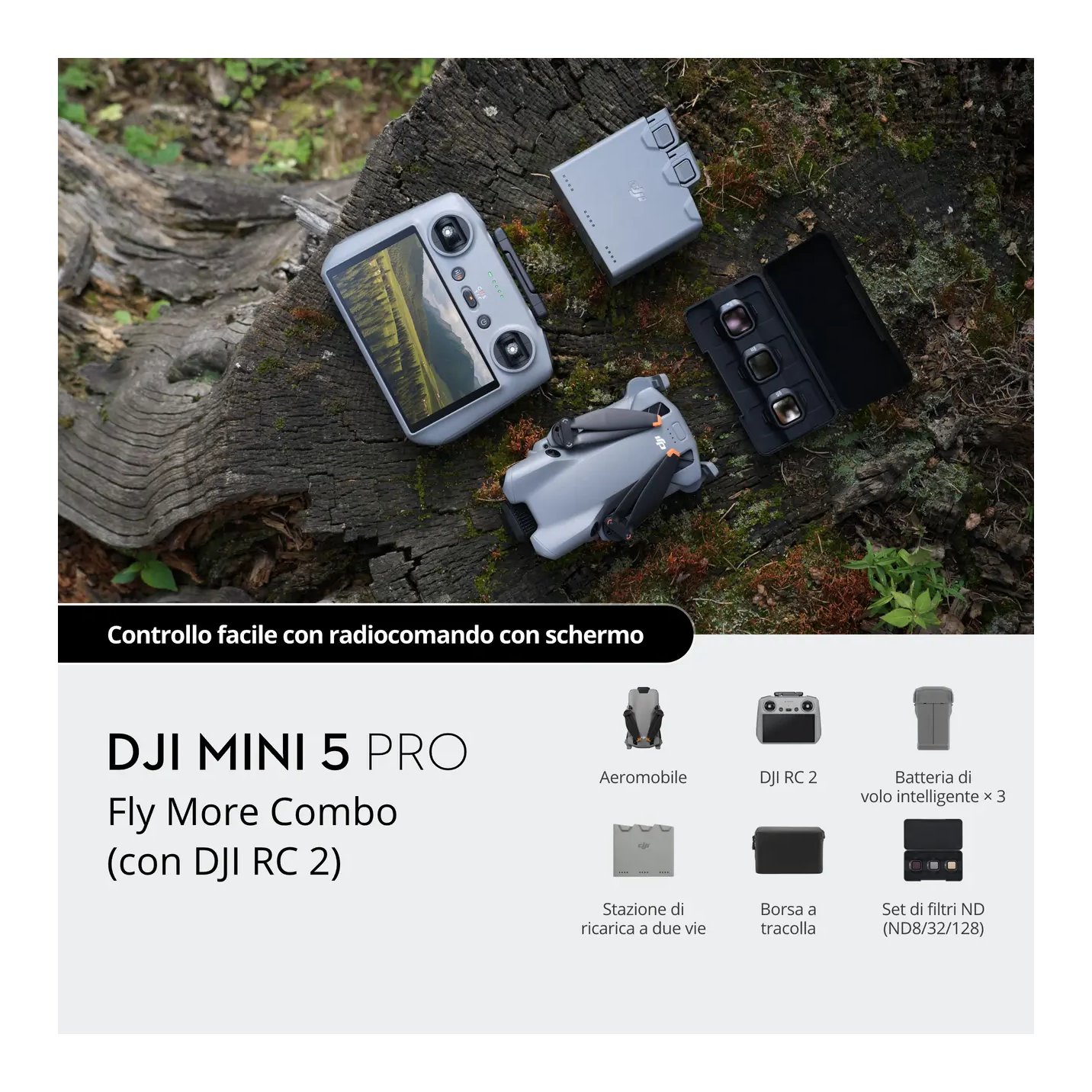 Mini 5 Pro presenta un design pieghevole ultraleggero e tascabile che si infila facilmente in uno zaino. È certificato C0, il che consente voli senza problemi nei paesi dell'UE.