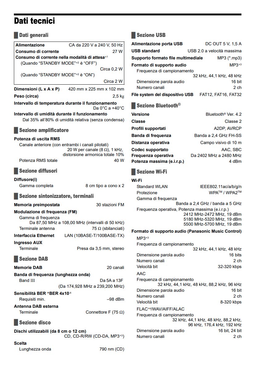 Potenza di uscita: 2x 20w