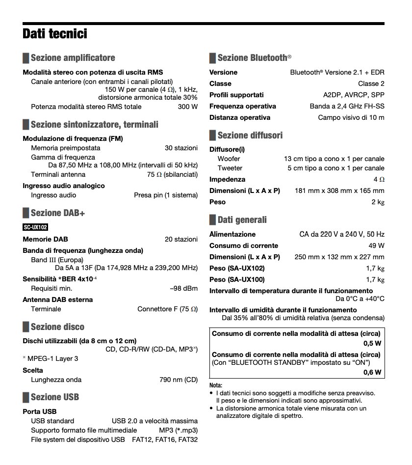 Panasonic Compatto HI FI URBAN AUDIO Bianco 2x 150w SC UX102E W