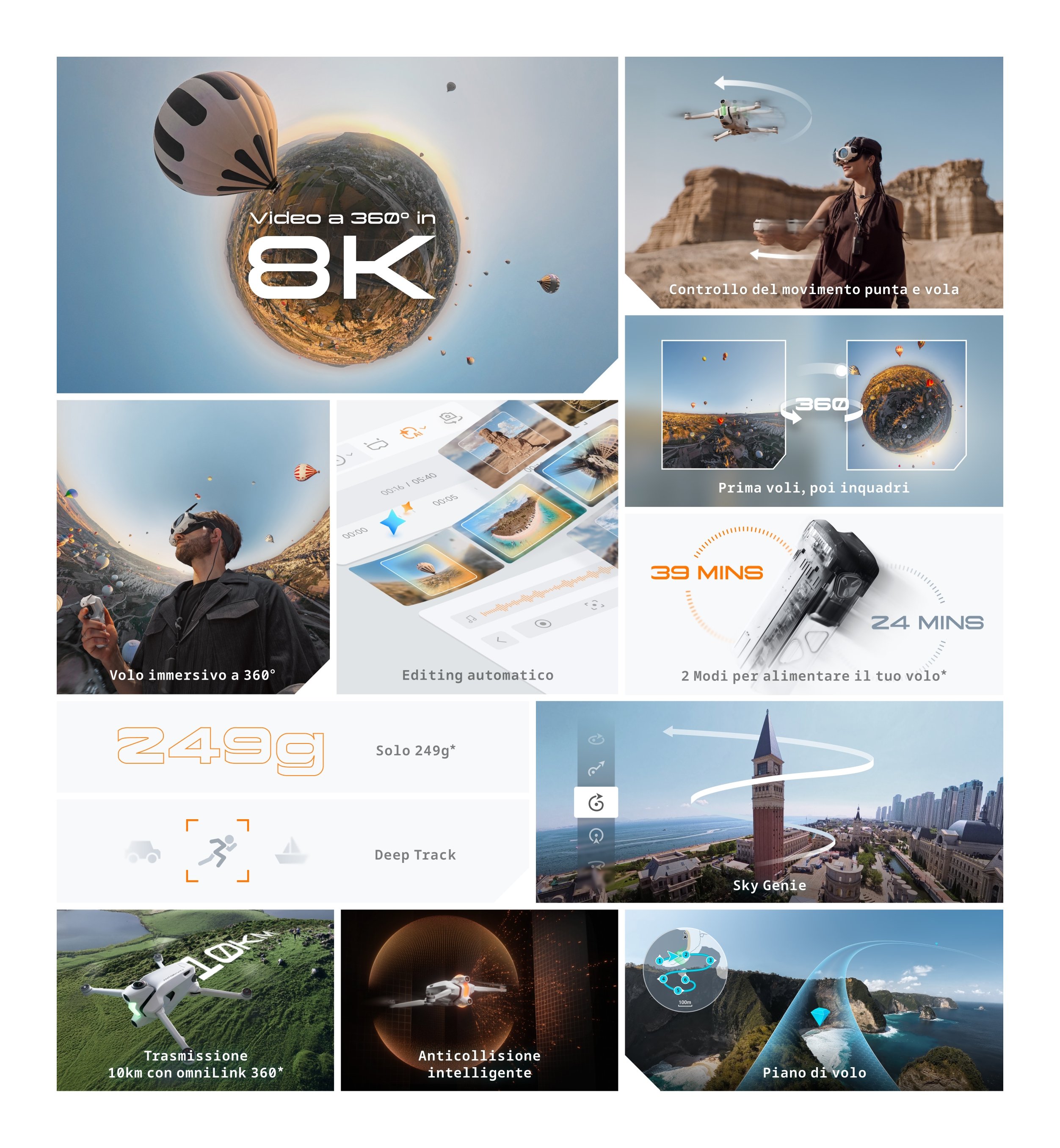 Il primo drone 8K 360° al mondo. Creato per superare i limiti e mettere in discussione ogni regola. Scopri cosa significa volare a 360° ed esplora una nuova dimensione di libertà creativa. Nessun guardrail. Nessun compromesso.