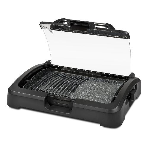 Con Gratella XL potrete soddisfare la vostra voglia di grigliare tutto l’anno: che sia carne, pesce o verdure, con questo barbecue elettrico otterrete sempre ottimi risultati. L’ampia superficie di cottura da 39 x 29 cm è abbastanza grande da cuocere un pasto per tutta la famiglia; la piastra in materiale antiaderente vi permetterà un doppio utilizzo: liscia per grigliare e rigata per funzione barbecue. La resistenza annegata nella piastra garantisce una cottura senza cattivi odori ed una perfetta distribuzione del calore, e con l’aiuto del termostato regolabile, potrete adattare la temperatura ad ogni alimento. Il coperchio in vetro temperato permette una cottura protetta: sarete al sicuro da schizzi di olio e grasso e potrete cuocere anche al freddo, poiché il calore verrà mantenuto all’interno. Infine, questa unità è completamente smontabile per permettervi una pulizia facile e veloce.
