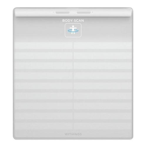 Bilancia sanitaria intelligente con manico estraibile come stazione sanitaria collegata in rete per la misurazione di vari parametri vitali: peso, indice di massa corporea, composizione corporea, ECG, età vascolare, velocità dell'onda del polso, frequenza cardiaca in piedi, attività nervosa.