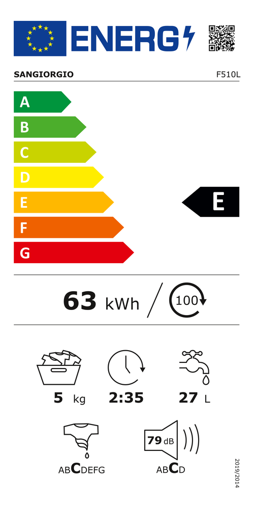 Consumo energetico ponderato per 100 cicli lavaggio 63kWh