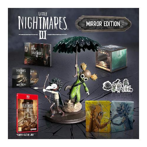 Little Nightmares III Mirror Edition include: Il gioco; I contenuti dell'edizione Deluxe (Pass di espansione e costumi); Un'esclusiva statuetta di Low e Alone in giro per la Necropoli (12 cm); Una pregiata custodia in metallo; L'artbook del gioco con schizzi inediti; La colonna sonora del gioco su CD e digitale; Un pacchetto di 5 adesivi di alta qualità spaventosamente affascinanti; Una scatola a tema raffigurante gli emblematici specchi del gioco.