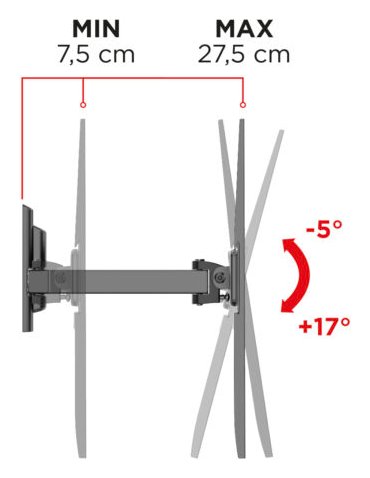 Flatstyle FR400 è un supporto adatto a tutte le TV con foratura VESA 200-300-400 mm, da 40 a 65 pollici, con una portata massima di 35 kg e distanza da muro di minimo 7 cm e massimo 27,5.