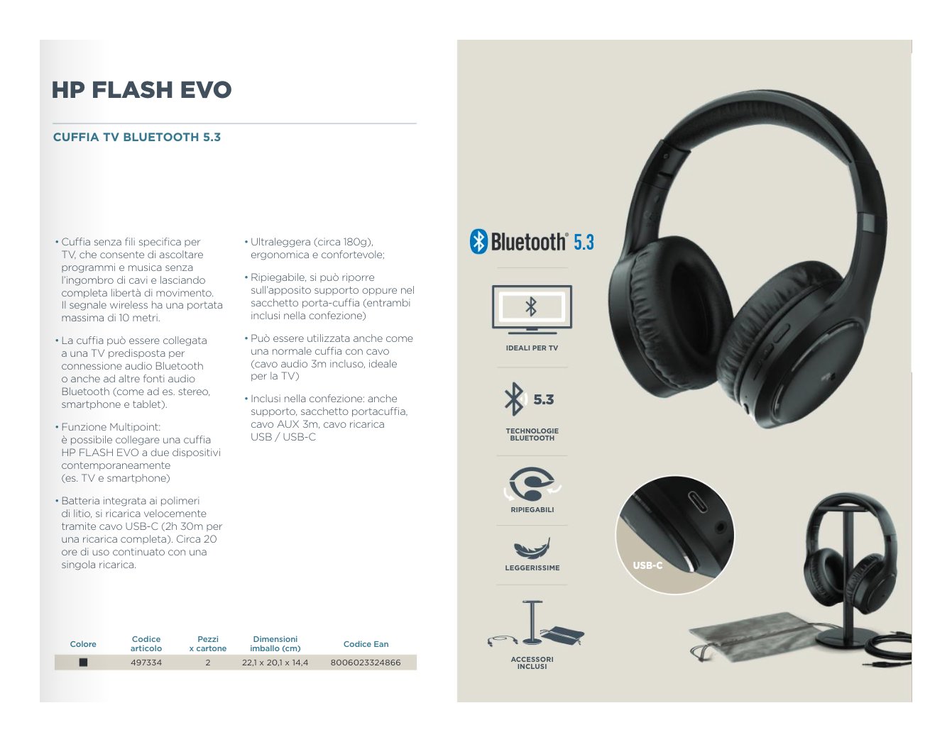 Le cuffie bluetooth per tv HP FLASH EVO sono la soluzione ideale per ascoltare programmi e musica senza l’ingombro di cavi, offrendo completa libertà di movimento. Il segnale wireless ha una portata massima di 10 metri, garantendo una connessione stabile e di alta qualità. Possono essere utilizzate anche come normali cuffie tv con filo, grazie al cavo audio da 3 metri incluso, ideale per la TV.