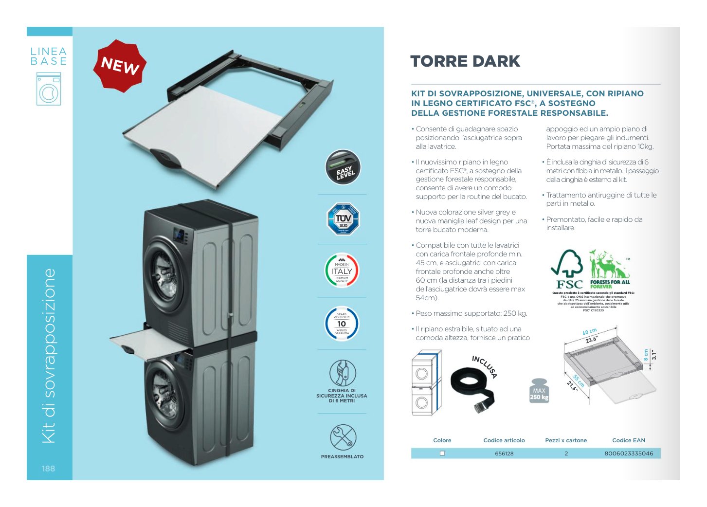 Kit di sovrapposizione, universale, con ripiano in legno. Inclusa cinghia di sicurezza. Ideale per lavatrici e asciugatrici nere! Ti permette di armonizzare il tuo spazio lavanderia!