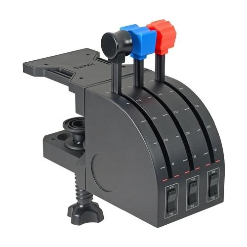 Se ti piace pilotare velivoli multi-motore, la maggior parte dei controller di simulazione di volo non ti permette di sfruttare completamente le potenzialità. Flight Throttle Quadrant è la soluzione, fornendo tre leve extra per controllare ancora più motori, flap, ingranaggi, spoiler o altri assi programmabili.