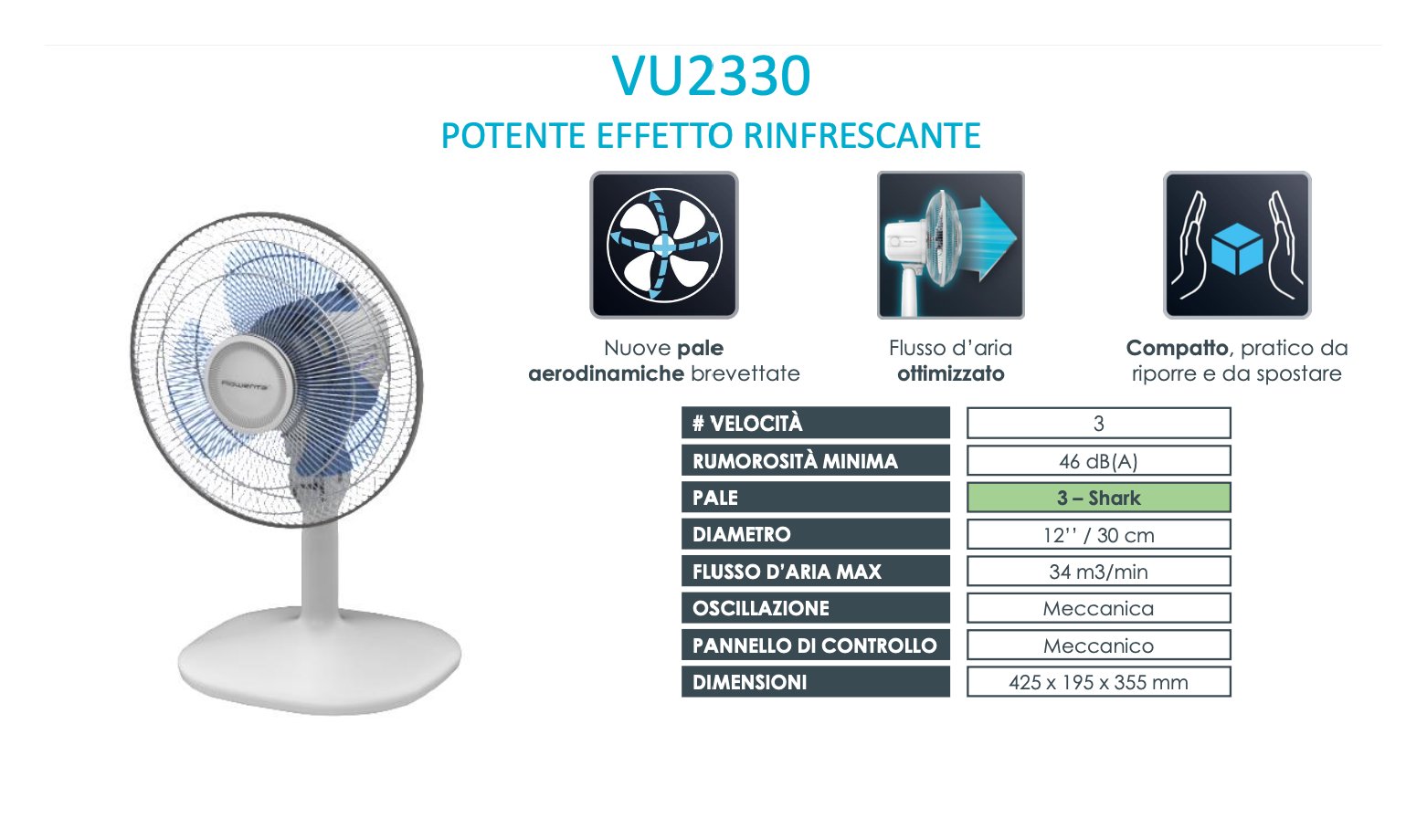 Rowenta Ventilatore Tavolo ESSENTIAL + Vu2330 Bianco 4100006804 35W 30cm 3 pale