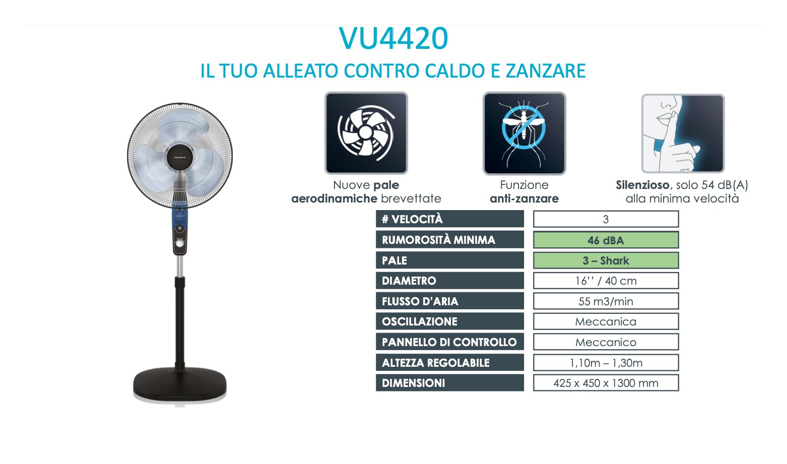Stai al fresco e liberati dalle zanzare in una volta sola. Questo ventilatore a piantana anti-zanzare unisce un effetto rinfrescante a un repellente liquido anti-zanzare e assicura una maggiore protezione dalle zanzare, con diffusione ottimizzata in tutta la stanza. È facile ed efficace! Compatibile con la maggior parte dei flaconi anti-zanzare presenti sul mercato, protegge fino a 60 notti per flacone, a seconda dell’uso. Inoltre, grazie alle 3 velocità regolabili, all'oscillazione automatica e alla modalità silenziosa, ti sentirai sempre a tuo agio.